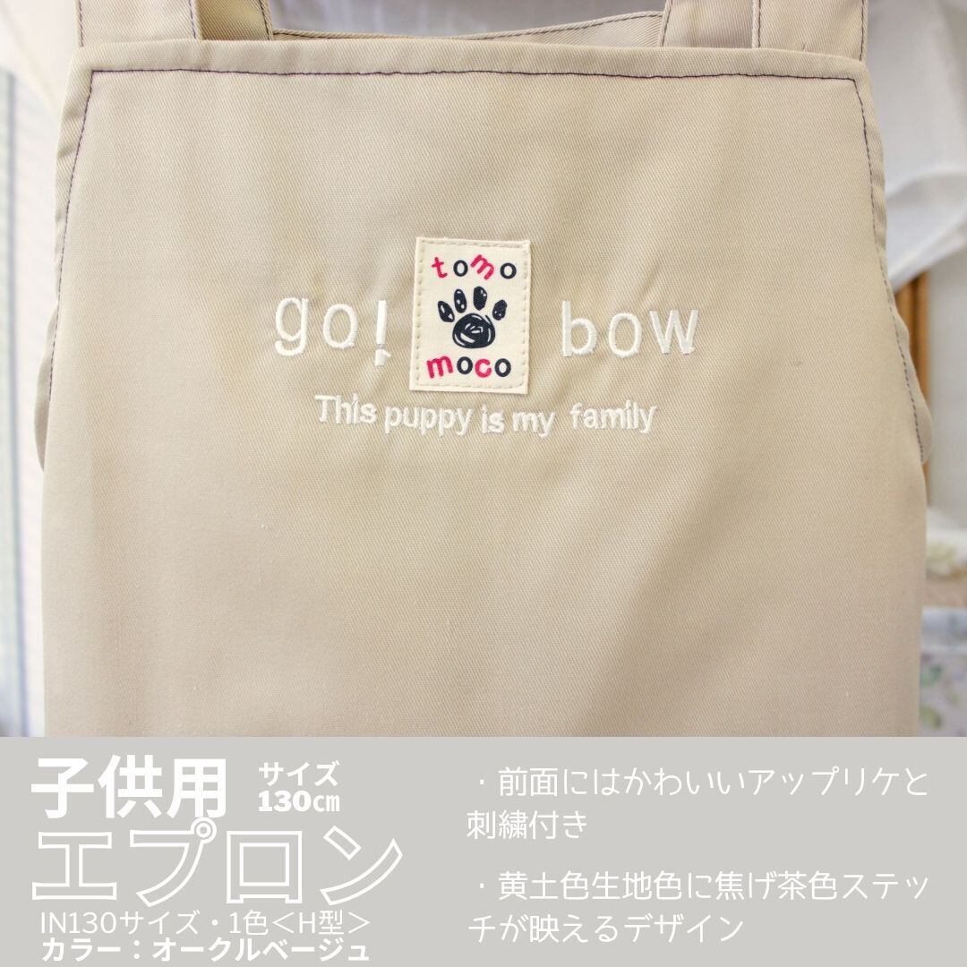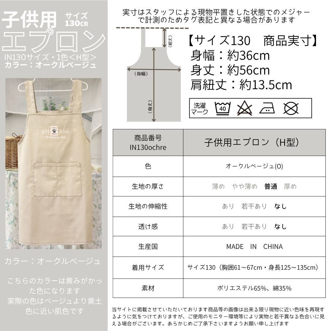 H型エプロン仕様、綿混素材、子供用130サイズ、色:オークルベージュで手軽に着られます。
