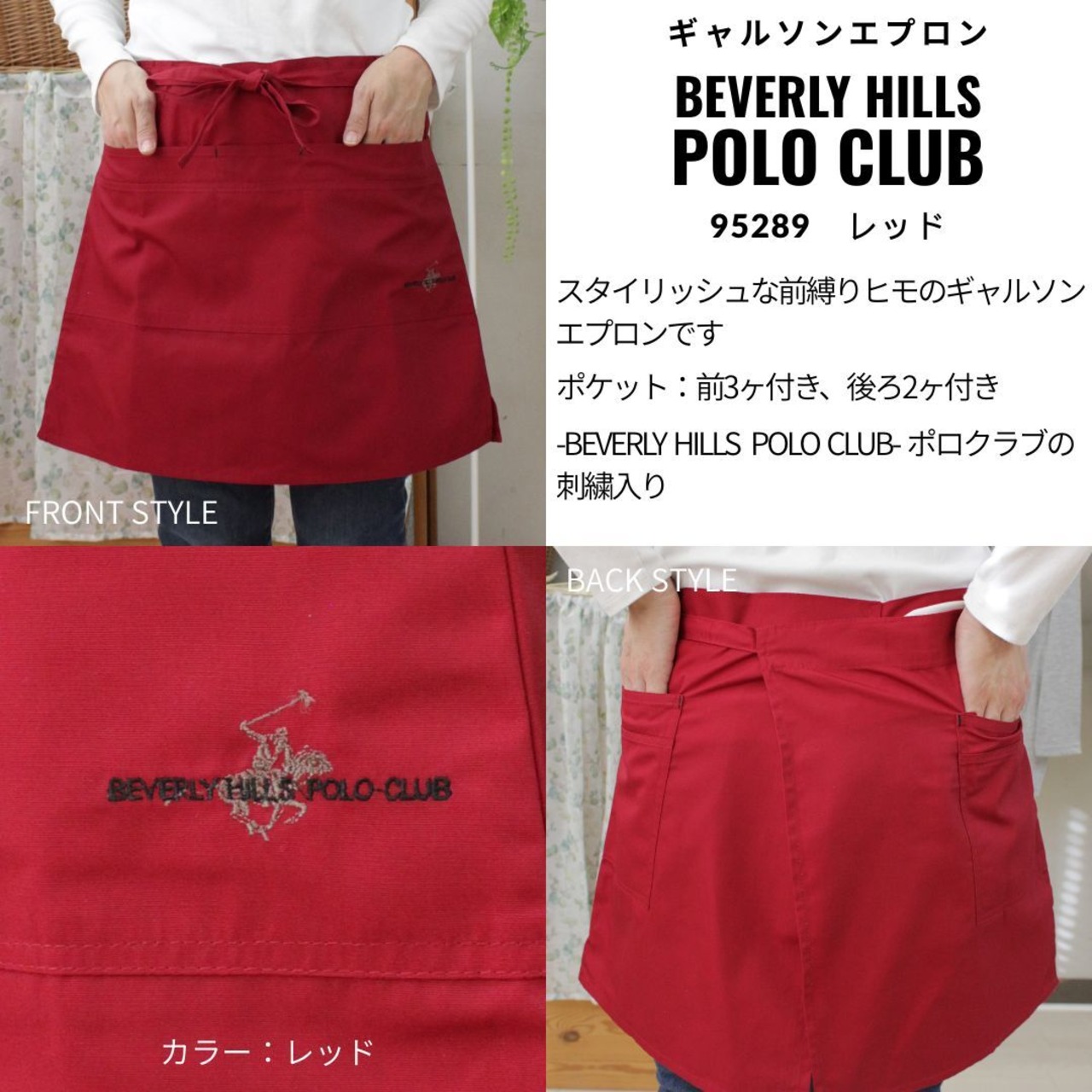 エプロン ワークエプロン カフェスタイル ギャルソン スタイリッシュデザイン POLOクラブ刺繍入り