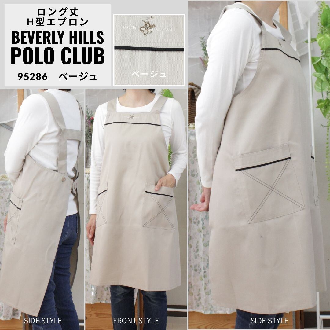 園芸用、仕事用、外作業着としてもオシャレスタイルなポロクラブのロング丈のH型エプロンです。