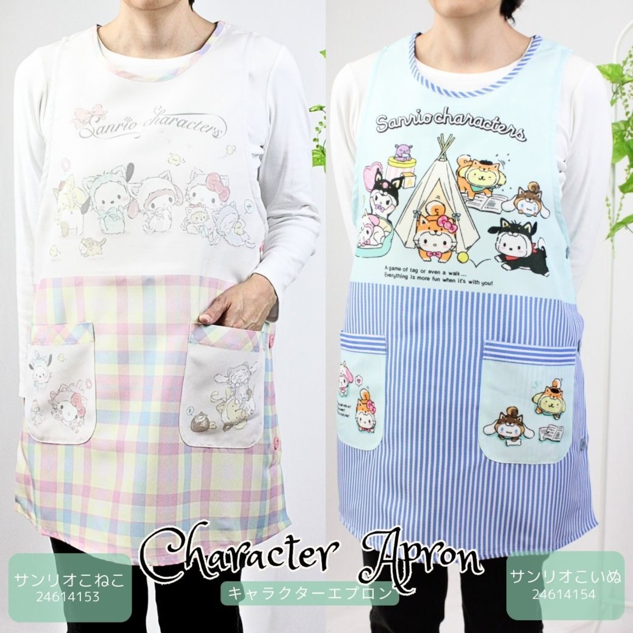 サンリオこねこ、サンリオこいぬの2種類で、しわになりにくく気軽に着られるキャラクター付きエプロンです。